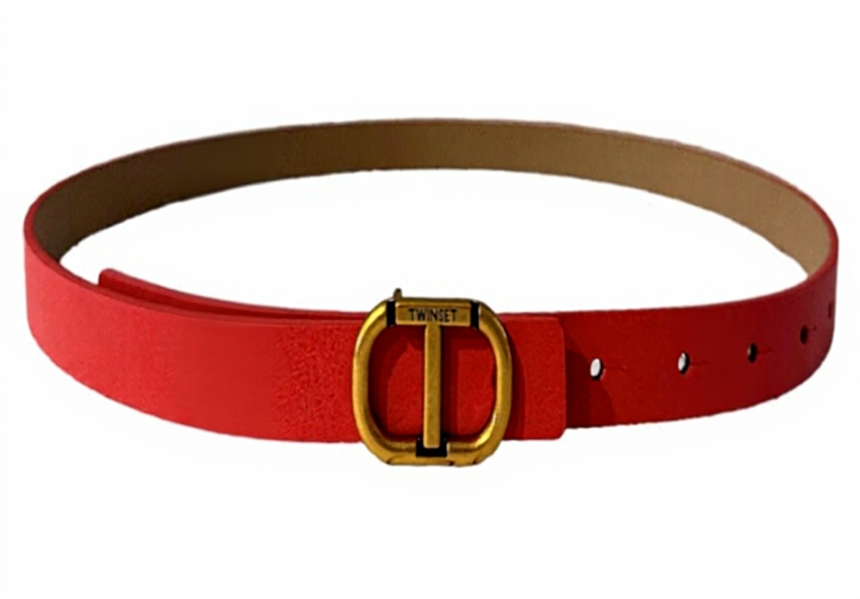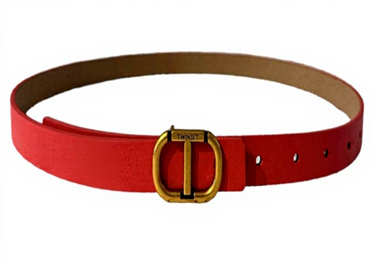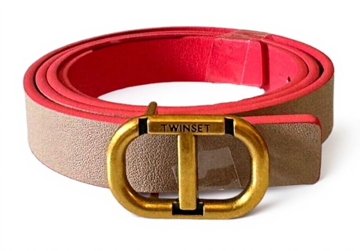 Realizzata in pelle morbida, la cintura TWINSET colpisce per la sua versatilità cromatica: da un lato, il fucsia acceso che richiama energia e allegria; dall’altro, il nude che si fonde con tonalità neutre, donando equilibrio. La chiusura a vite, piccola e metallizzata, richiede una leggera pressione per agganciarsi, un gesto che diventa naturale dopo i primi utilizzi. I bordi sono rifiniti con precisione, e la pelle mostra una grana sottile che cattura la luce in modo delicato, arricchendo l’outfit senza sovrastarlo.